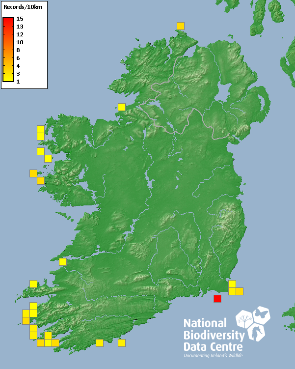 Distribution of the number of records recorded within each 10km grid square (ITM).Marine Map - 50km