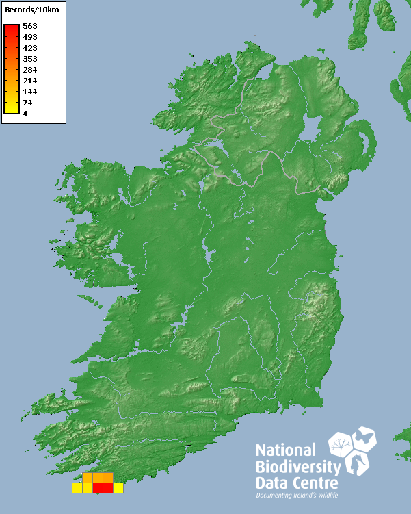 Distribution of the number of records within each 10km grid square (ITM).Marine Map - 50Km
