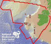 Distribution of the number of records within each 10km grid square (ITM).Marine Map - 50Km