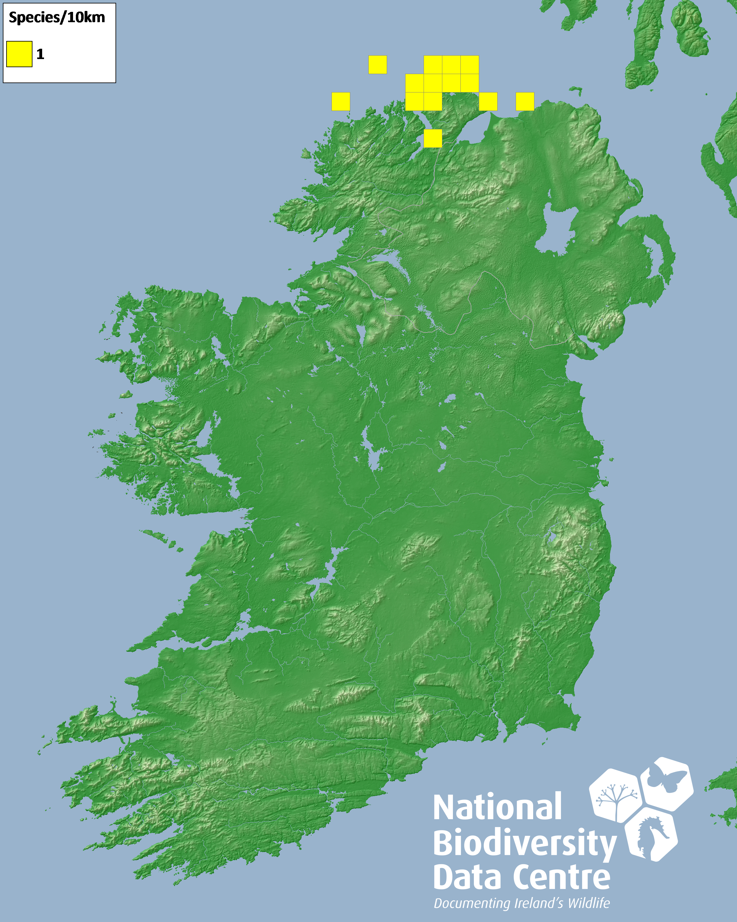Distribution of the number of records within each 10km grid square (ITM).Marine Map - 50Km
