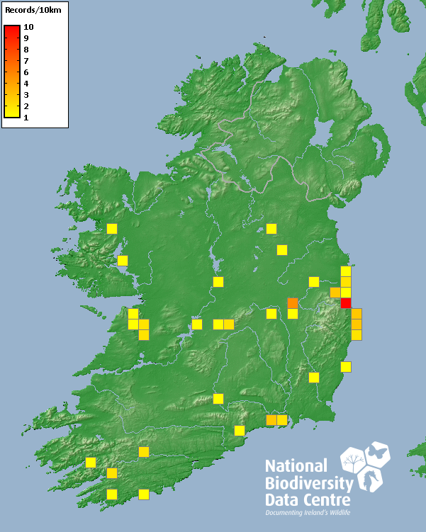 Distribution of the number of records recorded within each 10km grid square (ITM).Marine Map - 50km