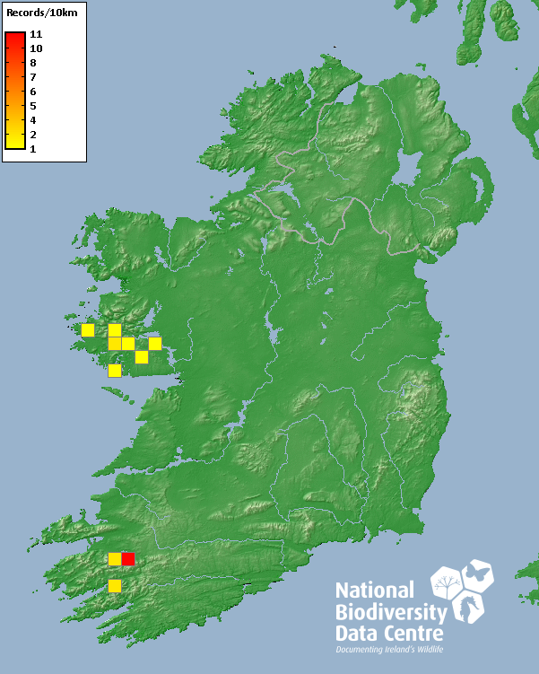Distribution of the number of records recorded within each 10km grid square (ITM).Marine Map - 50km