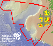 Distribution of the number of records recorded within each 10km grid square (ITM).Marine Map - 50km
