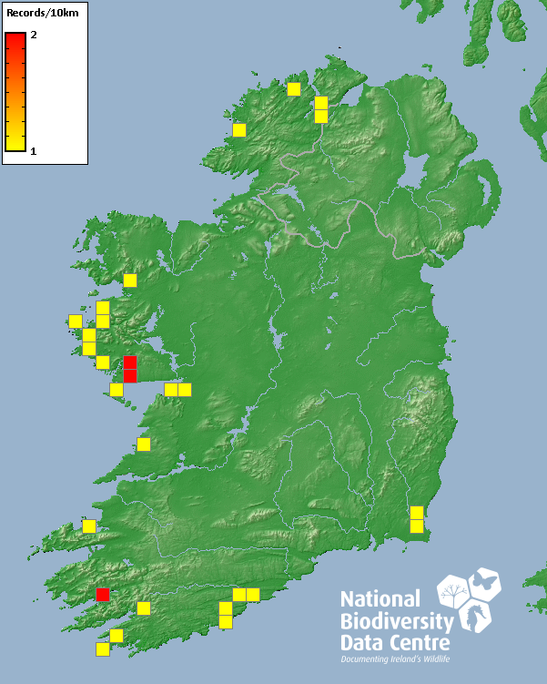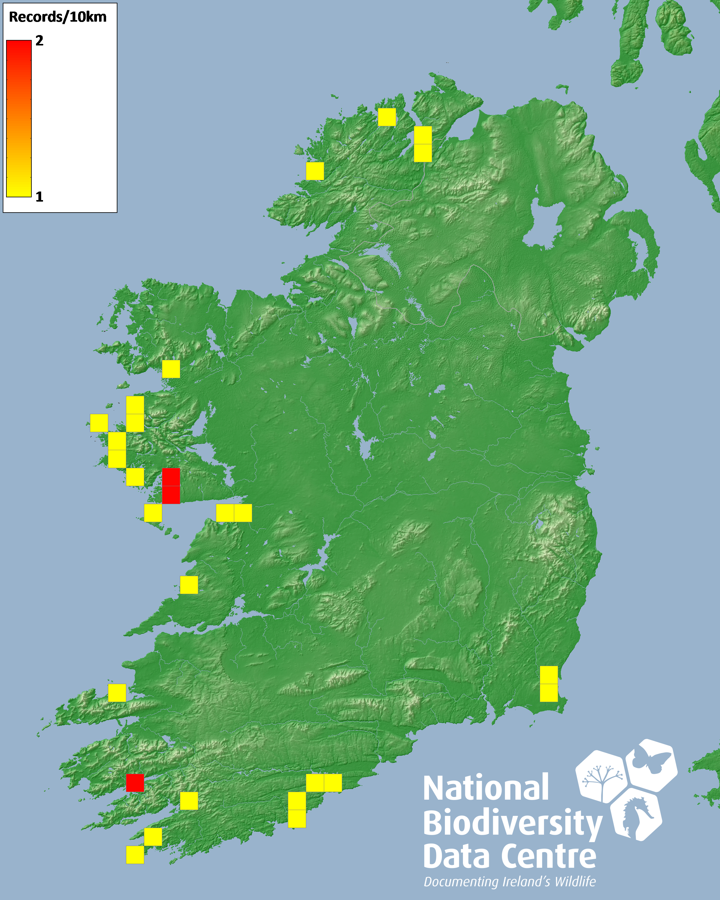 Distribution of the number of records recorded within each 10km grid square (ITM).Marine Map - 50km