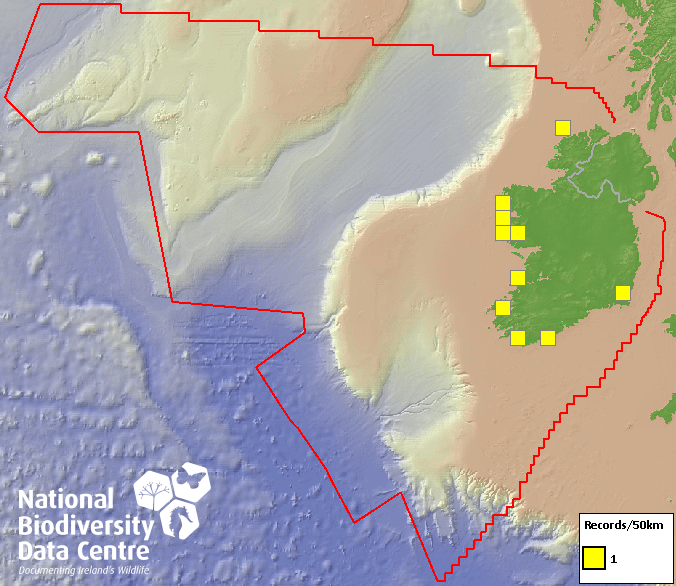 Distribution of the number of records recorded within each 10km grid square (ITM).Marine Map - 50km