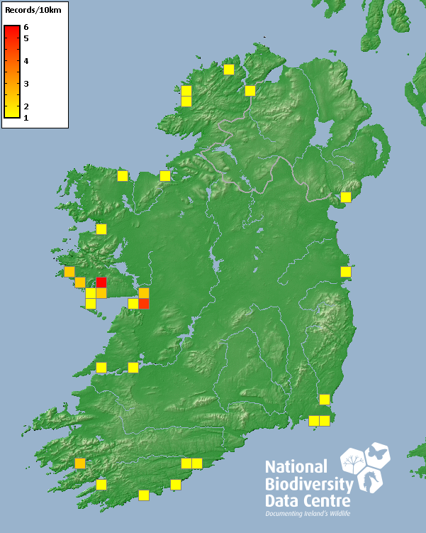 Distribution of the number of records recorded within each 10km grid square (ITM).Marine Map - 50km