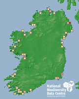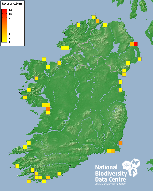 Distribution of the number of records recorded within each 10km grid square (ITM).Marine Map - 50km