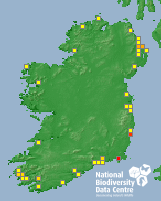 Distribution of the number of records recorded within each 10km grid square (ITM).Marine Map - 50km