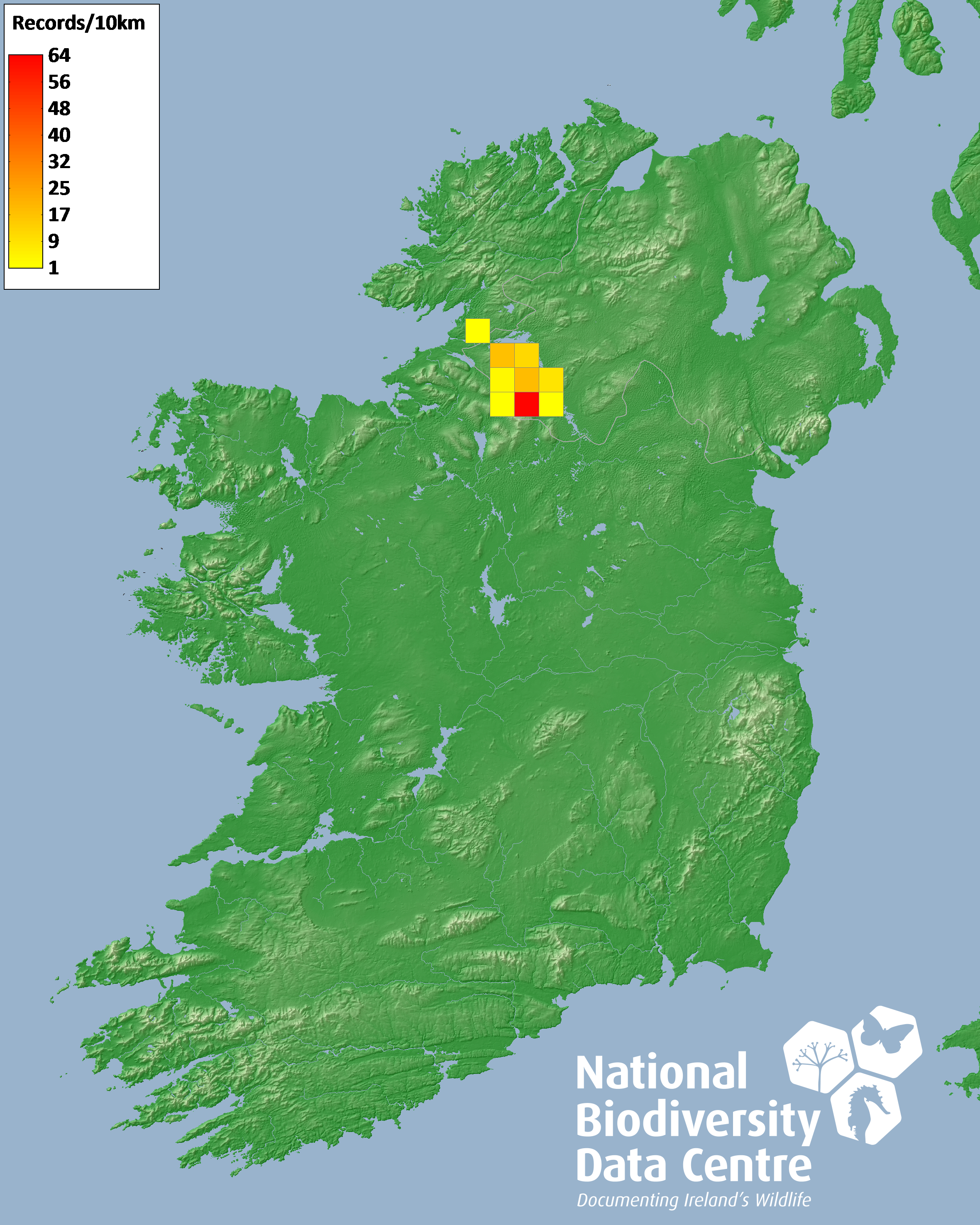 Distribution of the number of records recorded within each 10km grid square (ITM).Marine Map - 50km