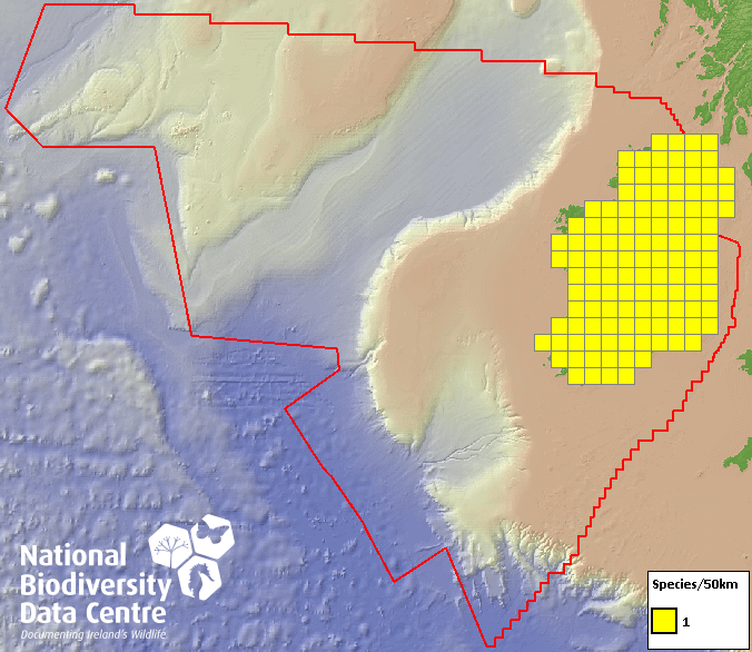 Distribution of the number of records within each 10km grid square (ITM).Marine Map - 50Km