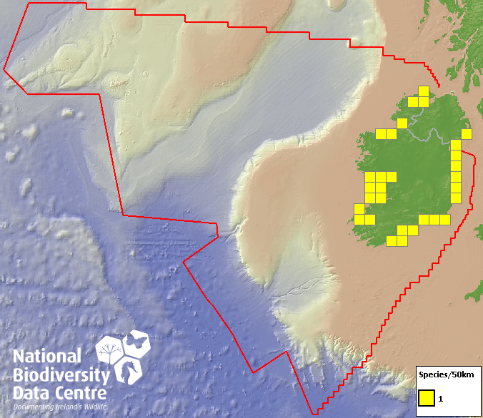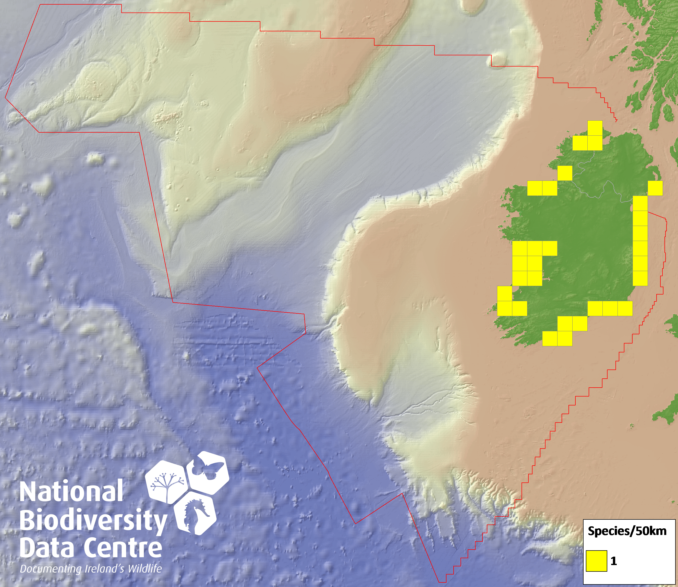Distribution of the number of records within each 10km grid square (ITM).Marine Map - 50Km