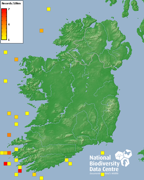 <img src='https://maps.biodiversityireland.ie/Species/MarineDistributionMapWebSize/134667?datasetId=322' alt='Common Dolphin (Delphinus delphis) (ObSERVE Aerial Surveys for Seabirds and Cetaceans in the Irish Atlantic Margin)' height='auto' width='auto'/>
