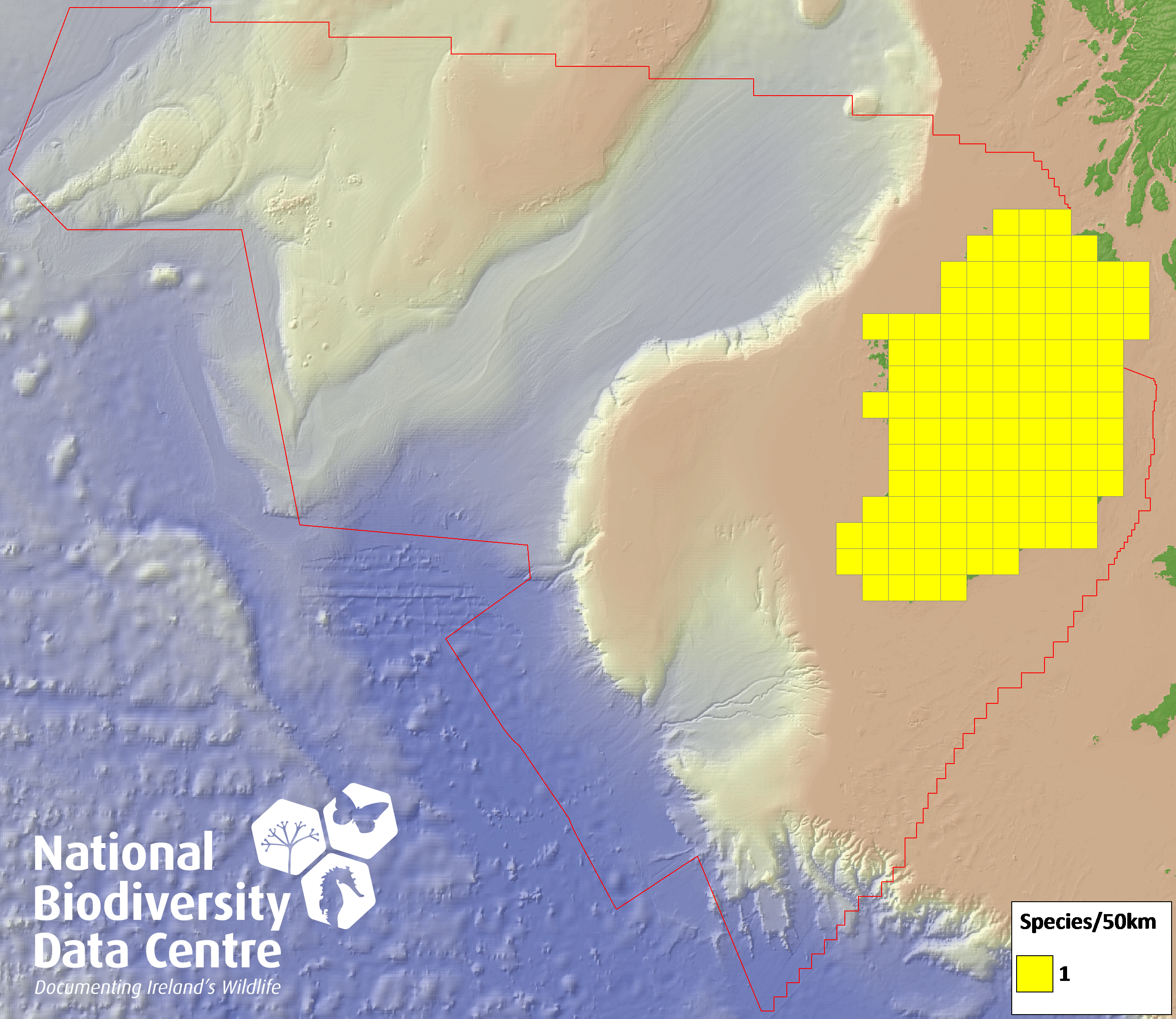 Distribution of the number of records within each 10km grid square (ITM).Marine Map - 50Km