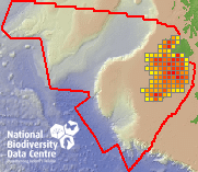 Distribution of the number of records recorded within each 10km grid square (ITM).Marine Map - 50km
