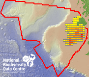 Distribution of the number of records recorded within each 10km grid square (ITM).Marine Map - 50km