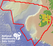 Distribution of the number of records recorded within each 10km grid square (ITM).Marine Map - 50km