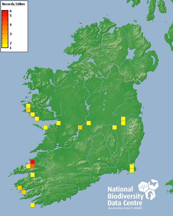 Distribution of the number of records recorded within each 10km grid square (ITM).Marine Map - 50km