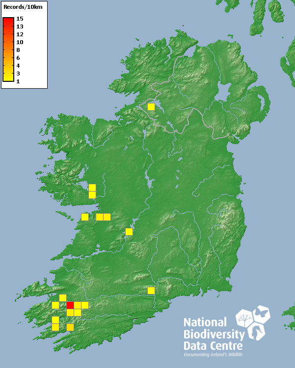 Distribution of the number of records recorded within each 10km grid square (ITM).Marine Map - 50km