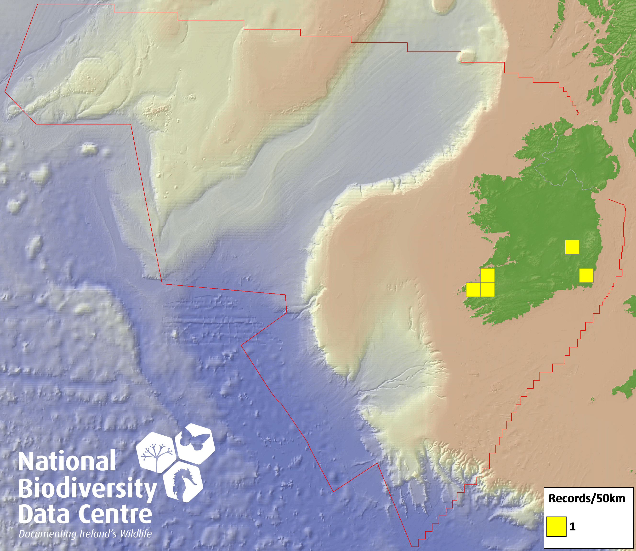Distribution of the number of records recorded within each 10km grid square (ITM).Marine Map - 50km
