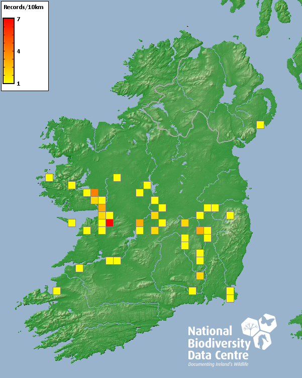 Distribution of the number of records recorded within each 10km grid square (ITM).Marine Map - 50km