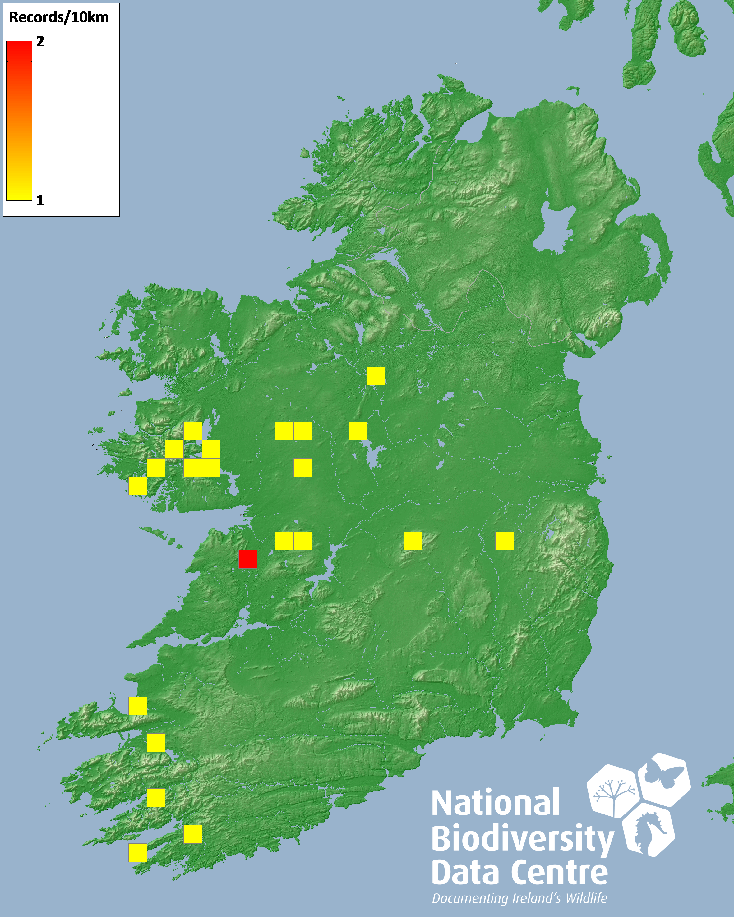 Distribution of the number of records recorded within each 10km grid square (ITM).Marine Map - 50km