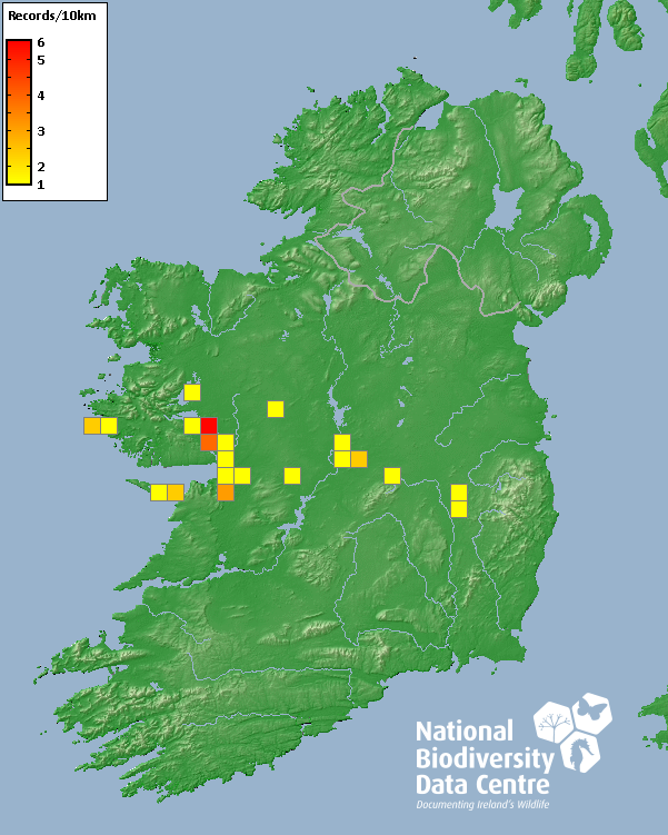 Distribution of the number of records recorded within each 10km grid square (ITM).Marine Map - 50km