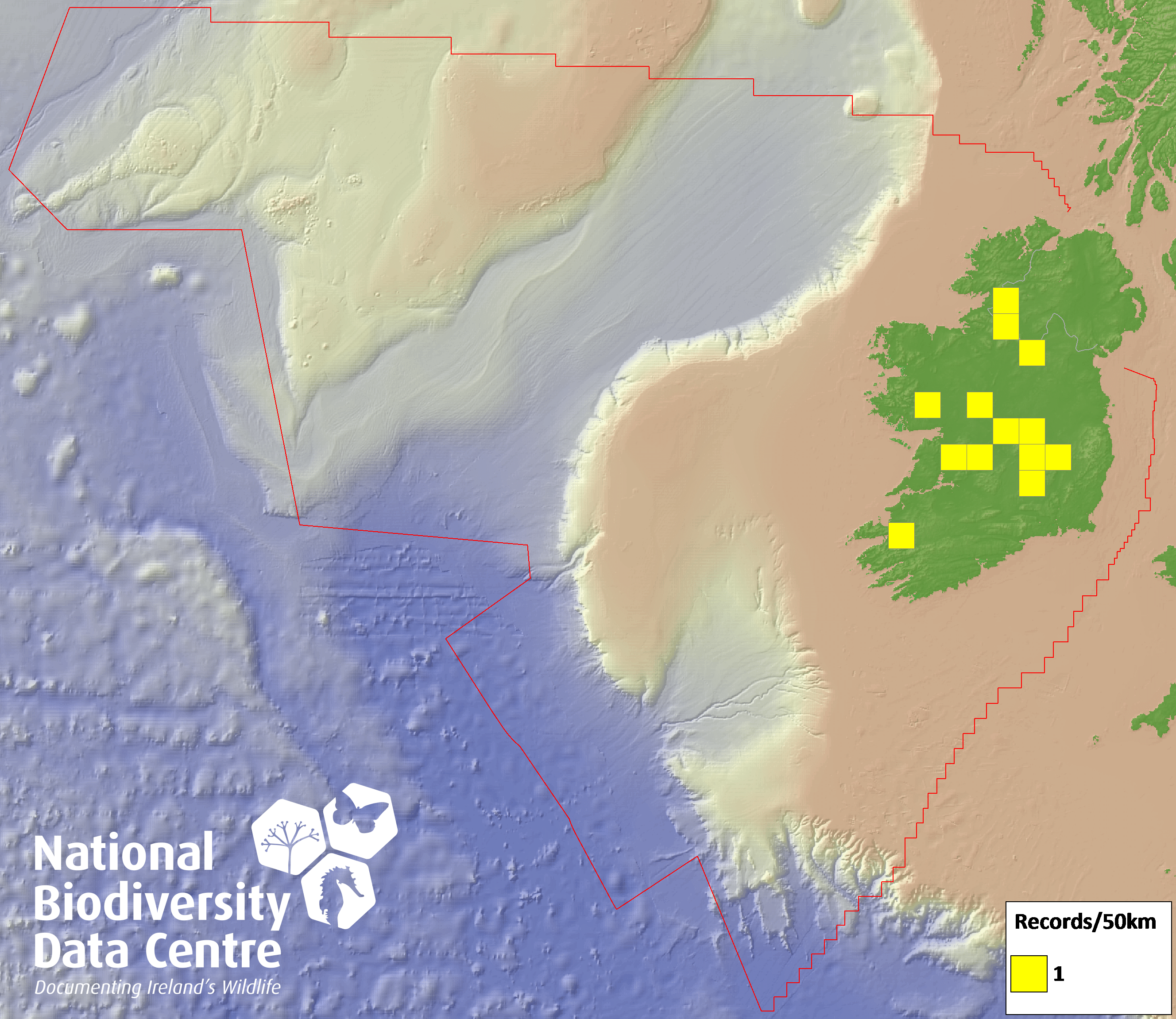 Distribution of the number of records recorded within each 10km grid square (ITM).Marine Map - 50km