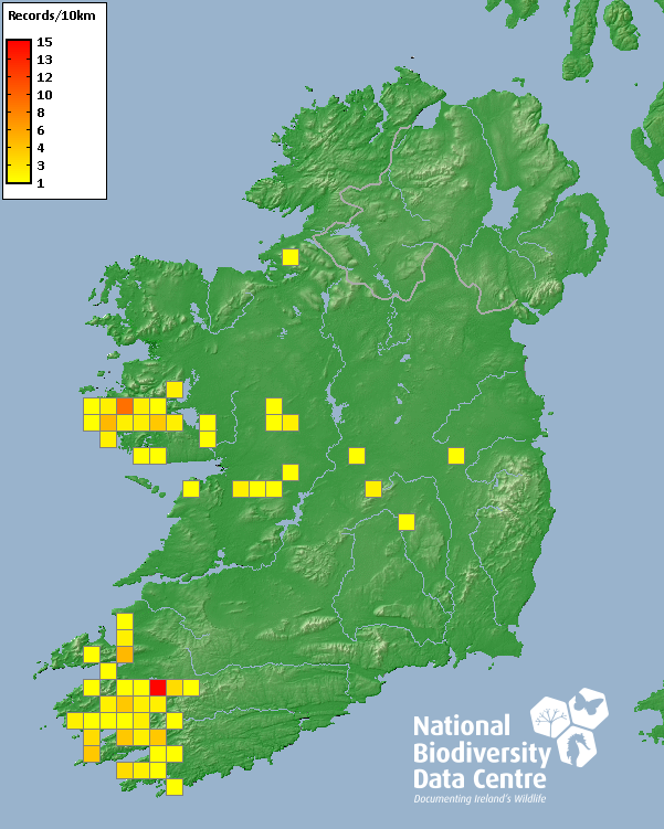 Distribution of the number of records recorded within each 10km grid square (ITM).Marine Map - 50km