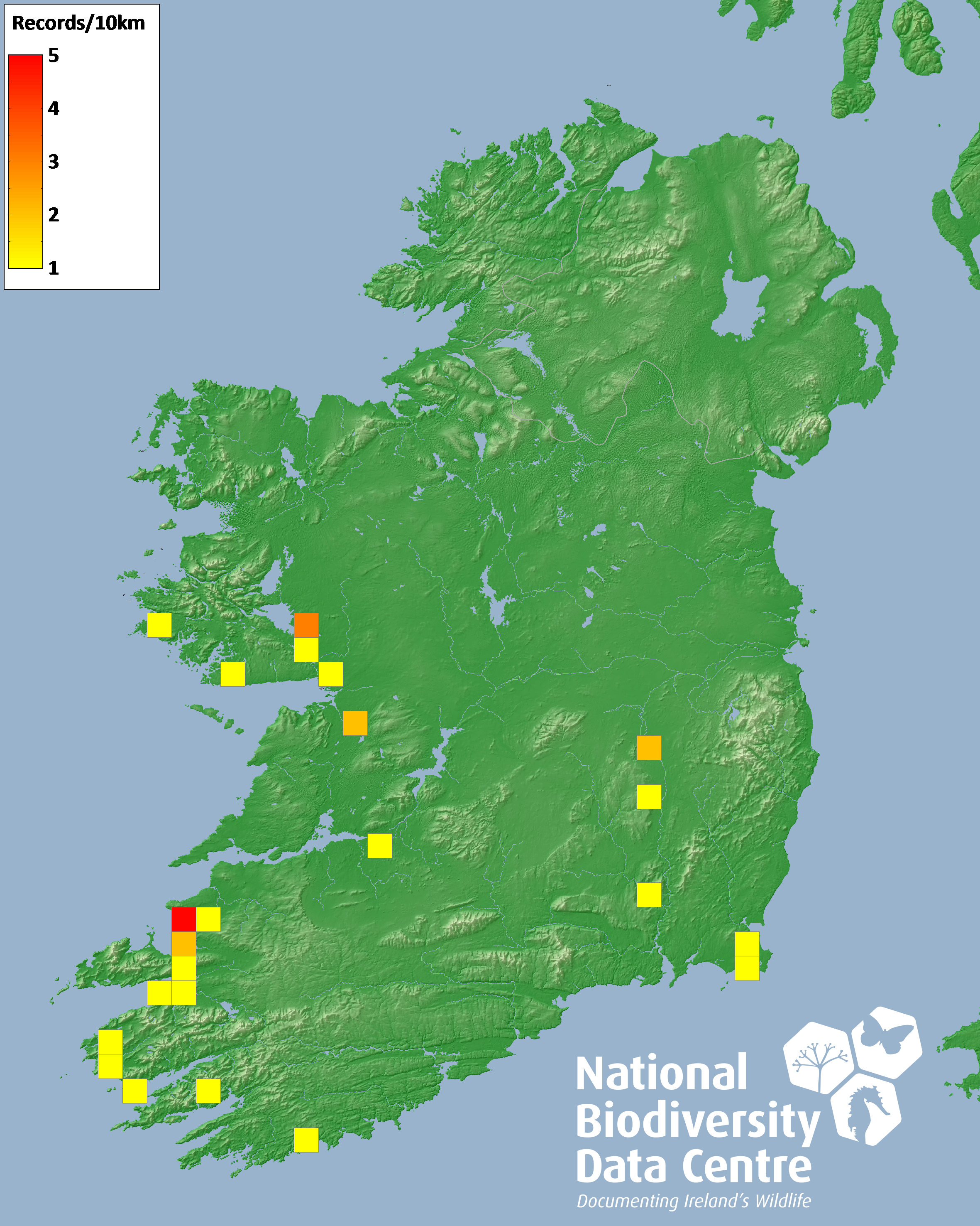 Distribution of the number of records recorded within each 10km grid square (ITM).Marine Map - 50km