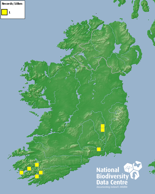 Distribution of the number of records recorded within each 10km grid square (ITM).Marine Map - 50km