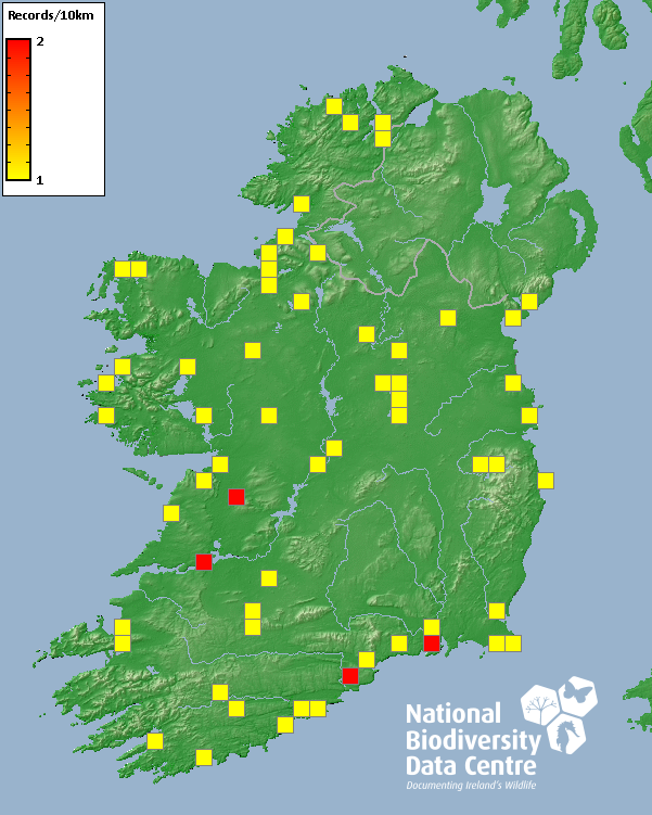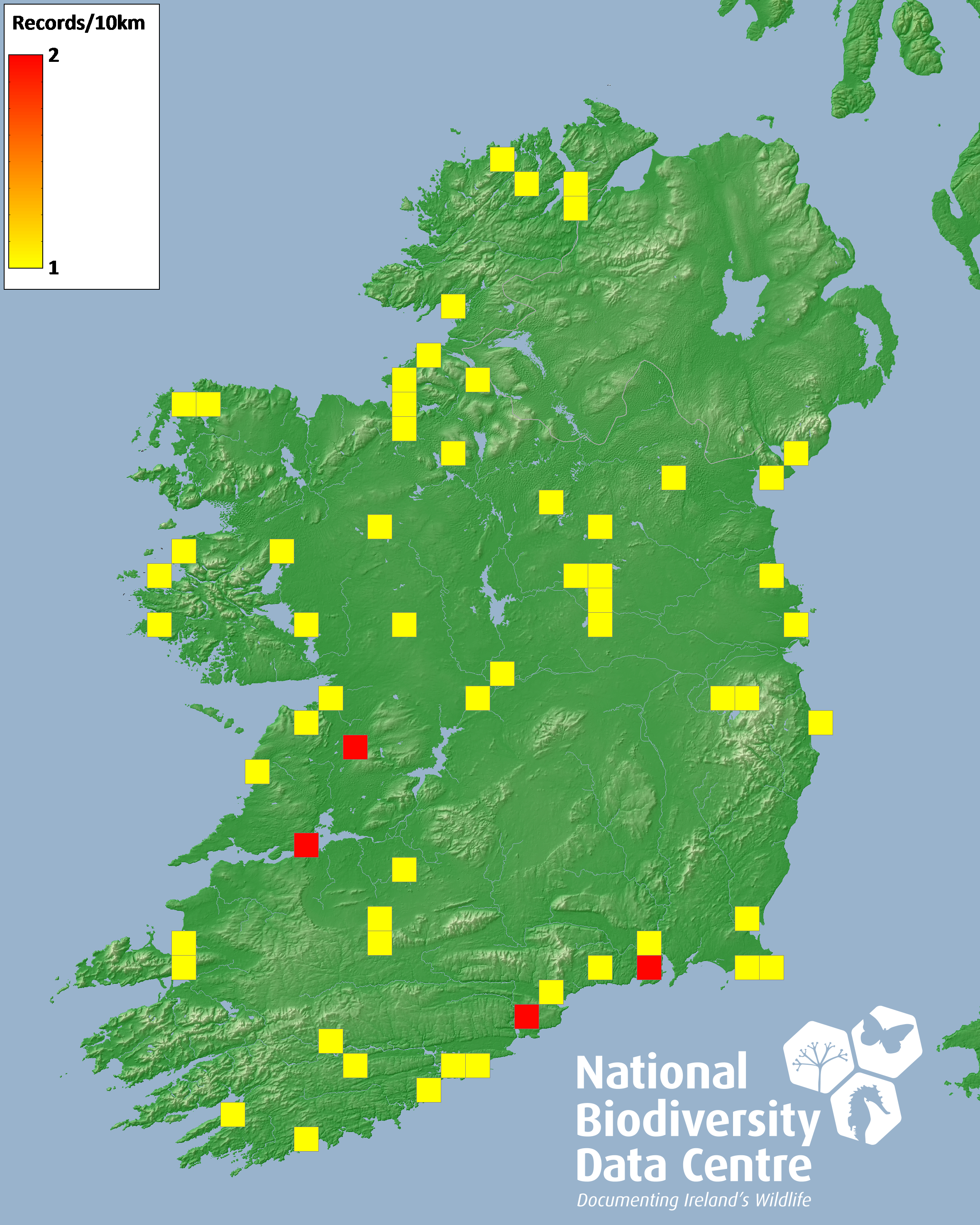 Distribution of the number of records recorded within each 10km grid square (ITM).Marine Map - 50km