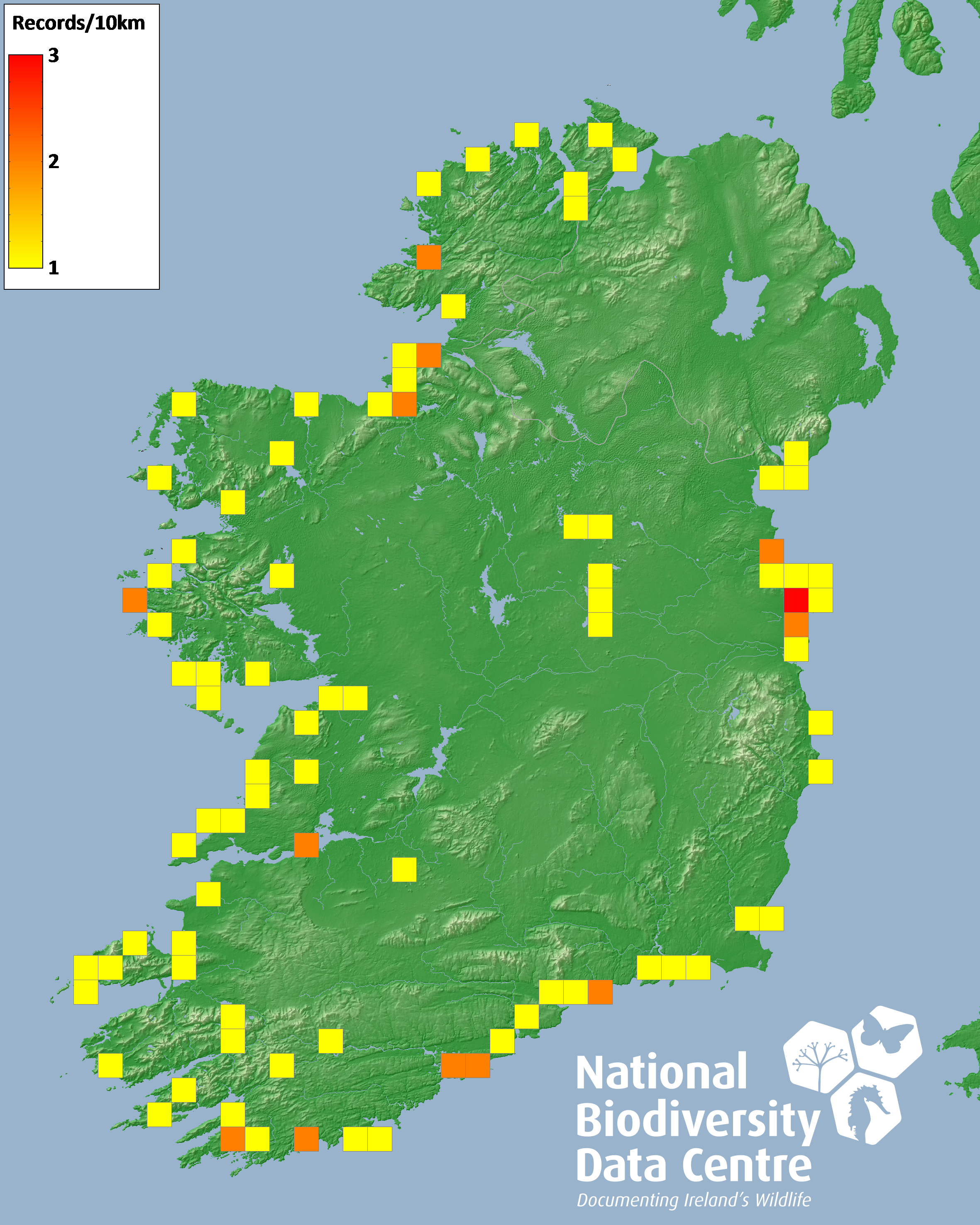 Distribution of the number of records recorded within each 10km grid square (ITM).Marine Map - 50km