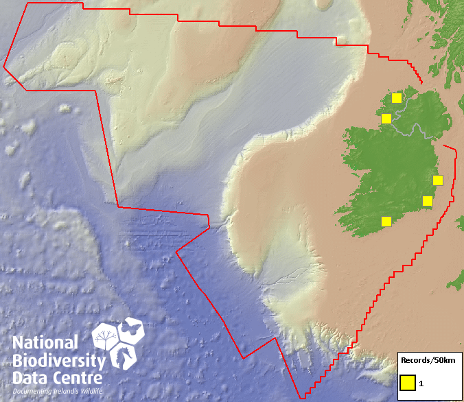 Distribution of the number of records recorded within each 10km grid square (ITM).Marine Map - 50km