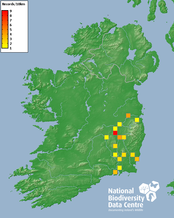 Distribution of the number of records recorded within each 10km grid square (ITM).Marine Map - 50km