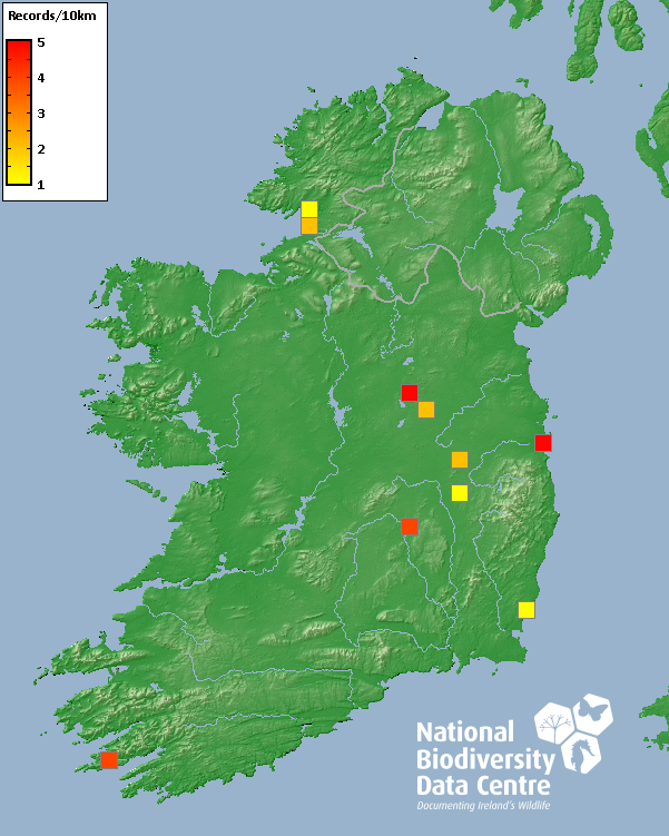 Distribution of the number of records recorded within each 10km grid square (ITM).Marine Map - 50km