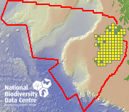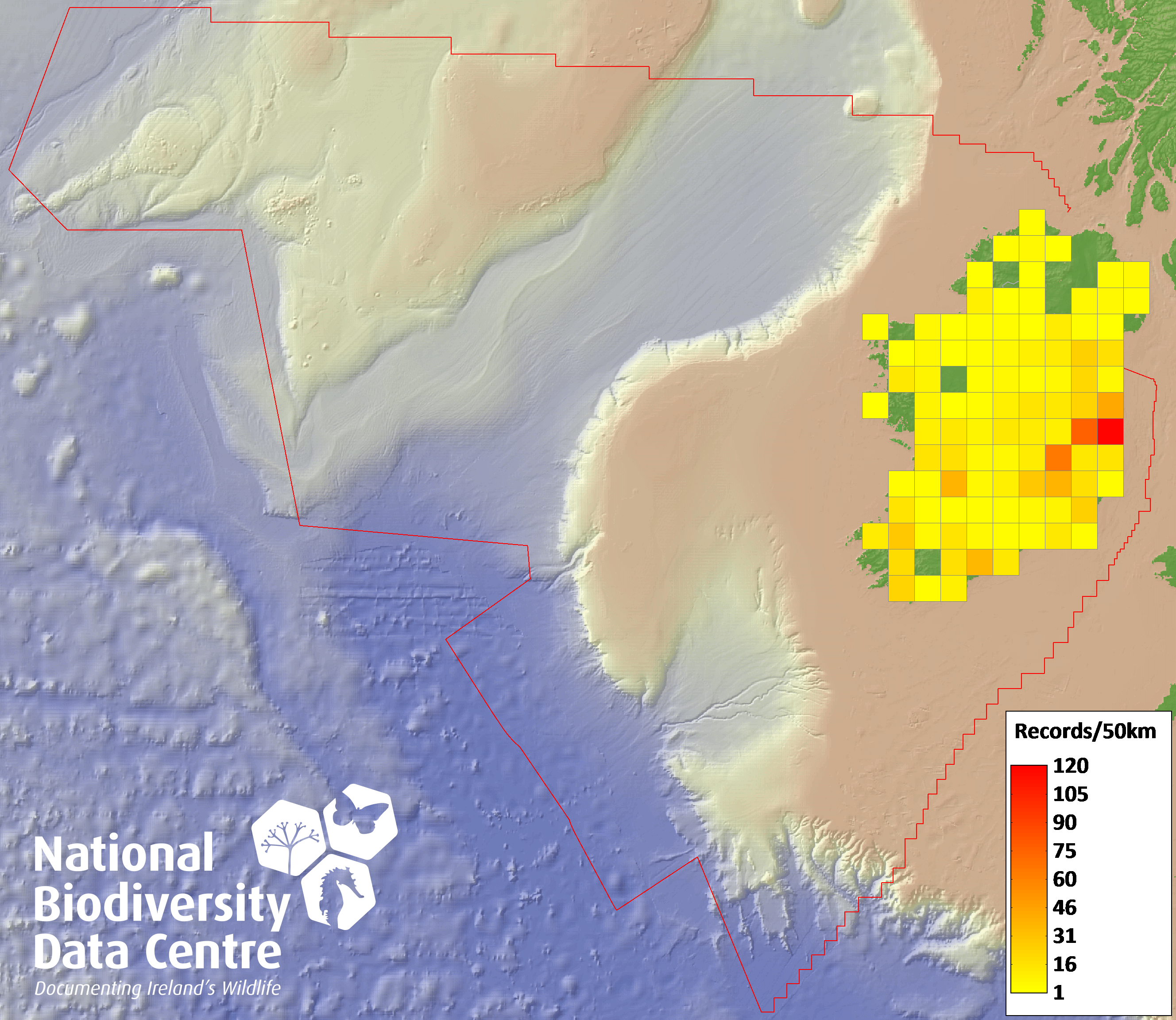 Distribution of the number of records within each 10km grid square (ITM).Marine Map - 50Km
