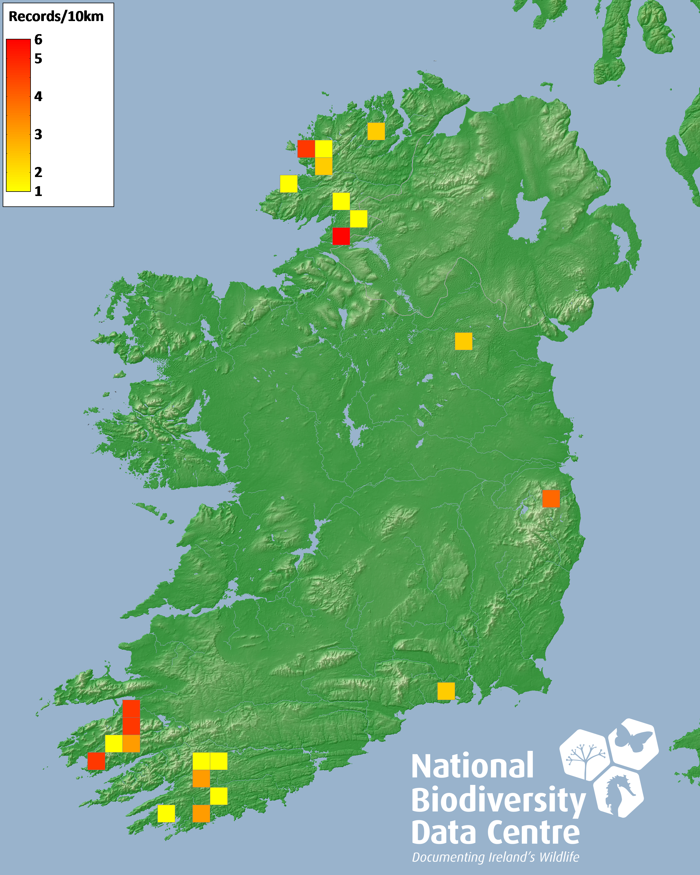 Distribution of the number of records recorded within each 10km grid square (ITM).Marine Map - 50km