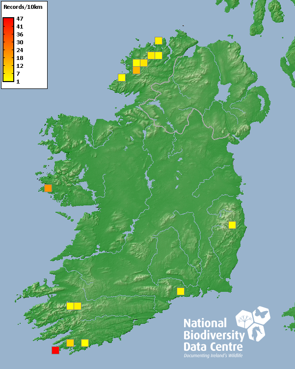 Distribution of the number of records recorded within each 10km grid square (ITM).Marine Map - 50km