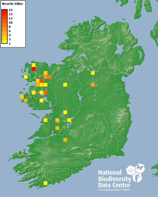 Distribution of the number of records recorded within each 10km grid square (ITM).Marine Map - 50km