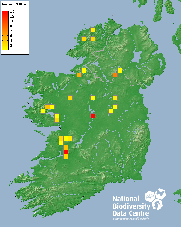 Distribution of the number of records recorded within each 10km grid square (ITM).Marine Map - 50km