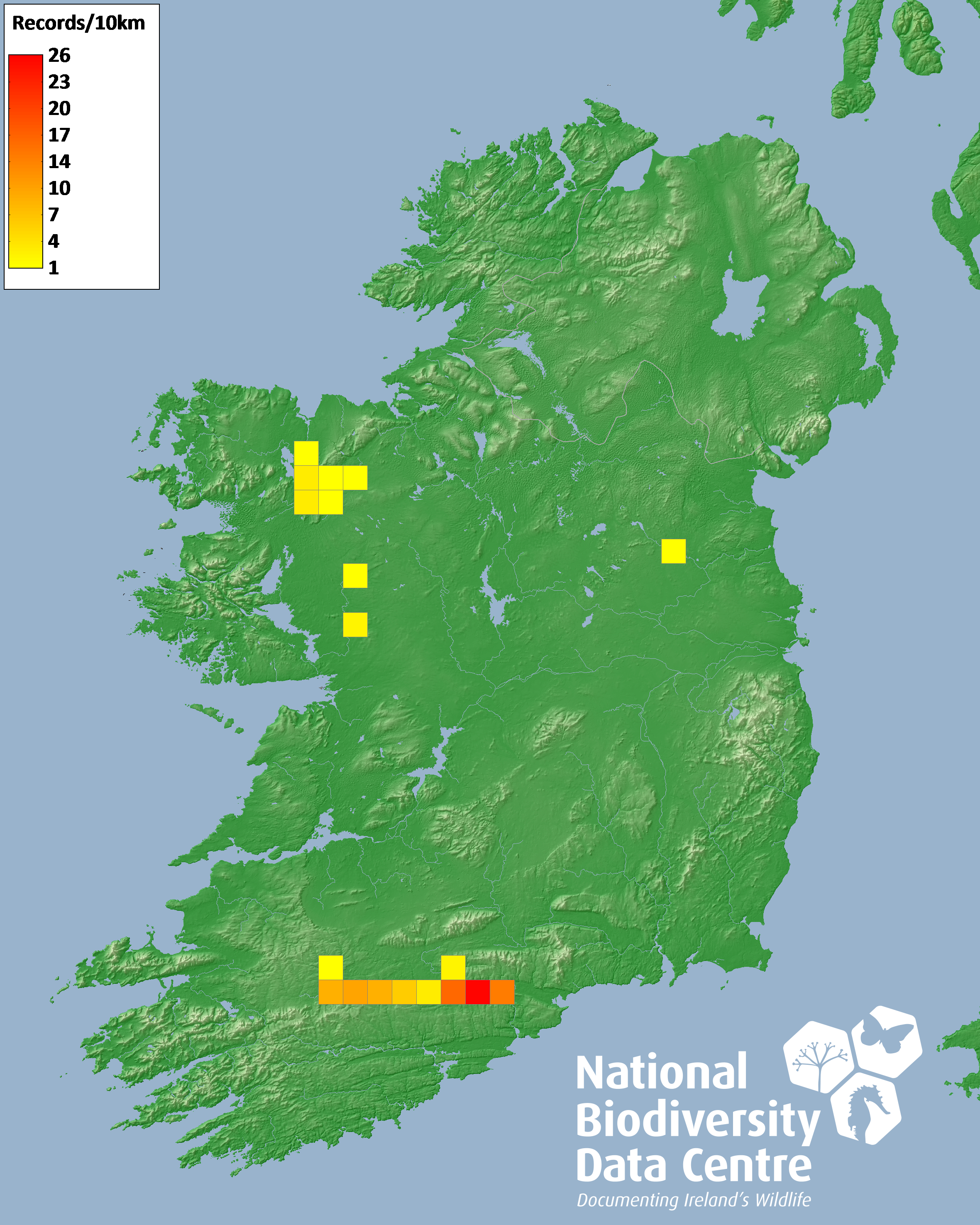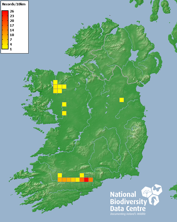 Distribution of the number of records recorded within each 10km grid square (ITM).Marine Map - 50km