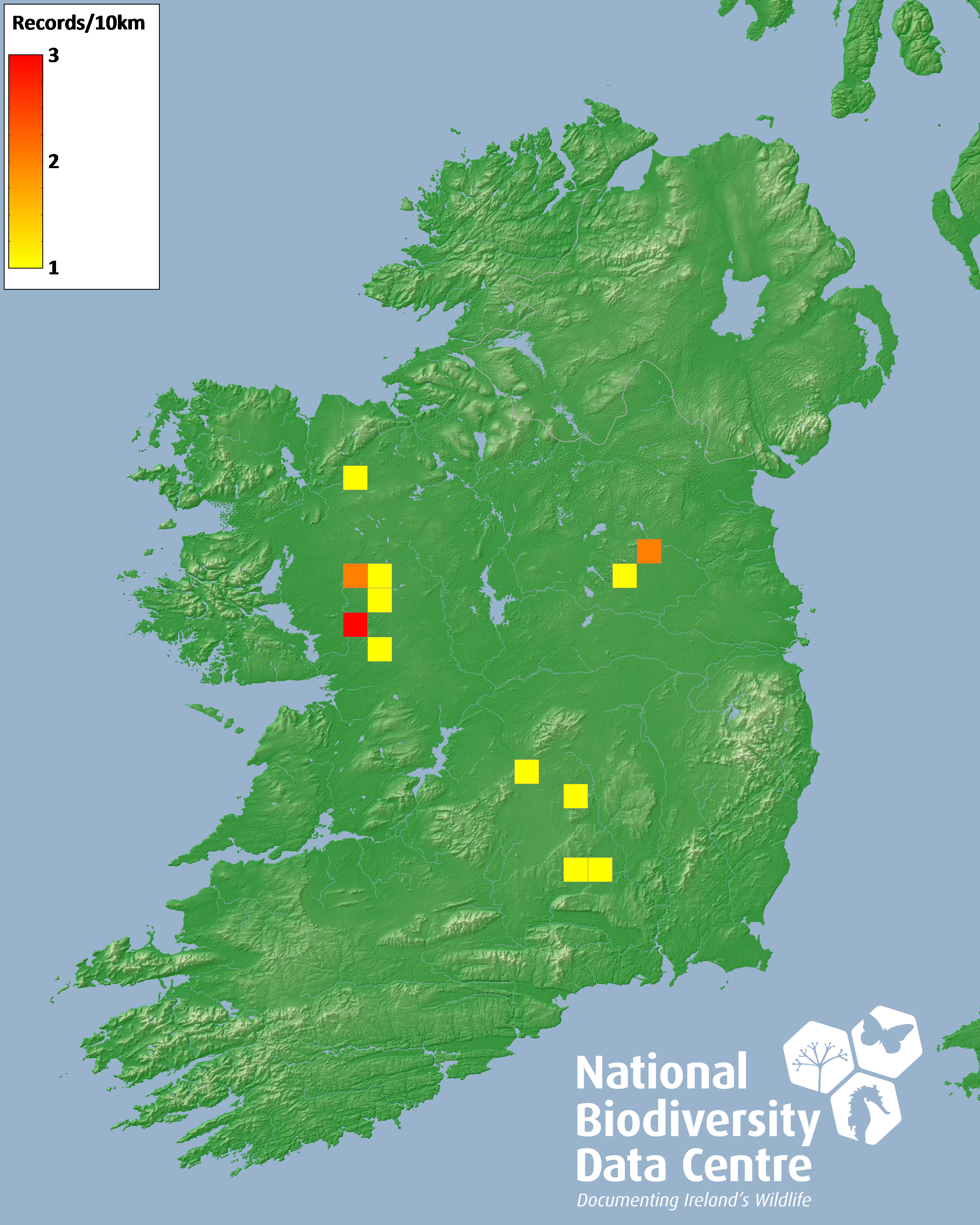 Distribution of the number of records recorded within each 10km grid square (ITM).Marine Map - 50km
