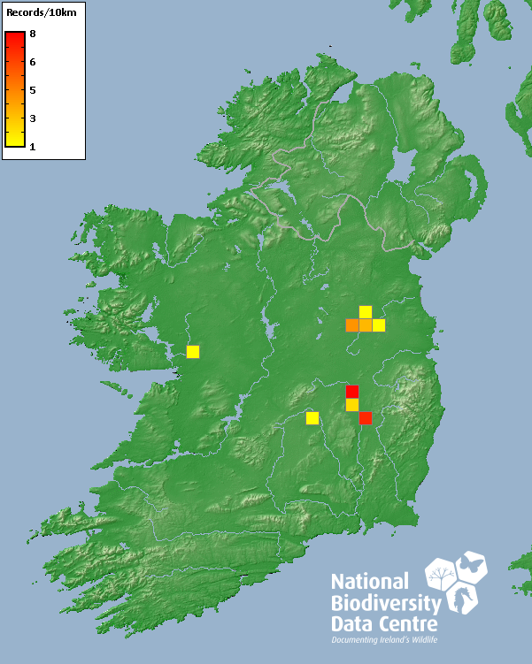 Distribution of the number of records recorded within each 10km grid square (ITM).Marine Map - 50km