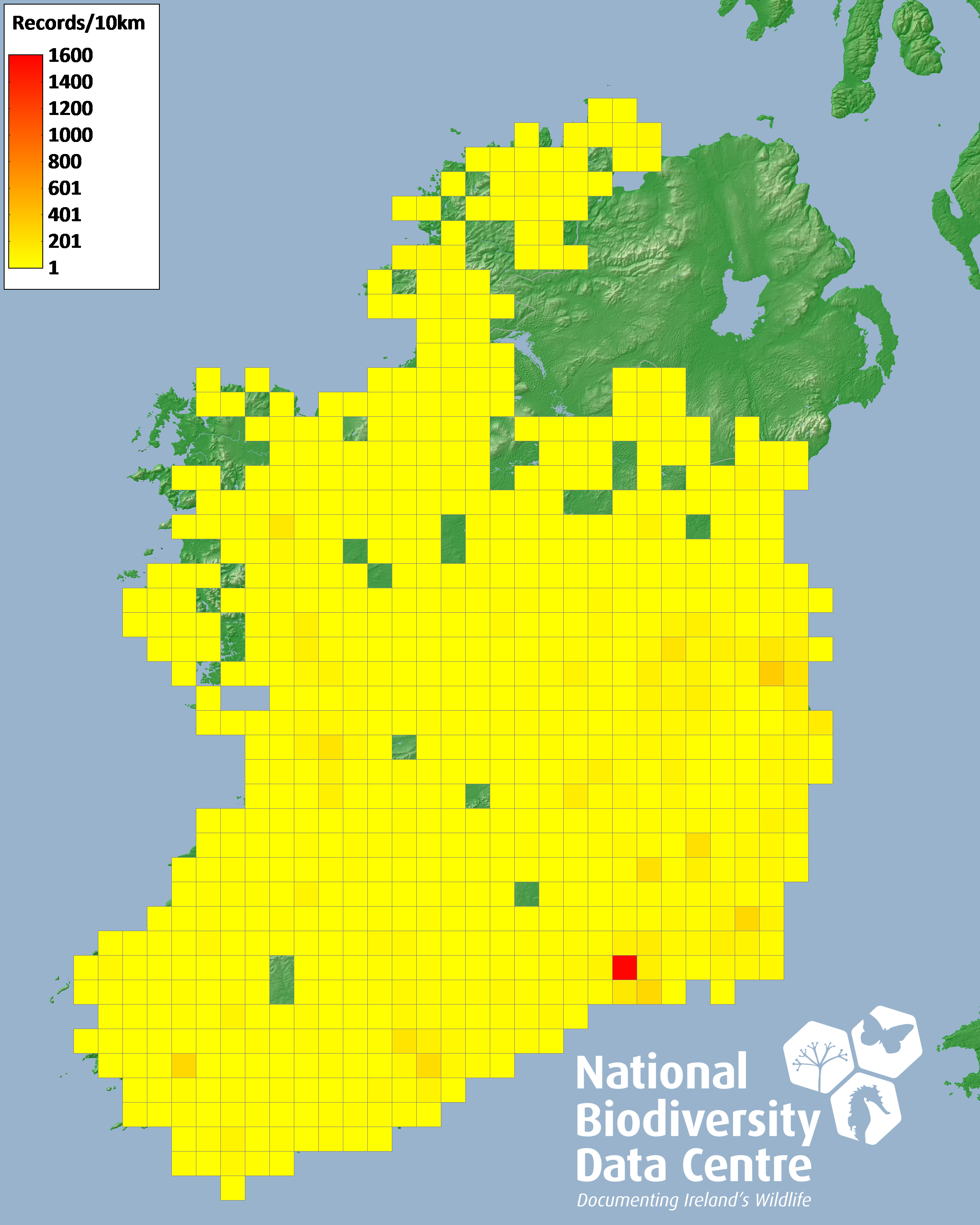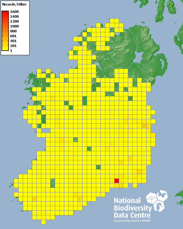 Distribution of the number of records recorded within each 10km grid square (ITM).Marine Map - 50km