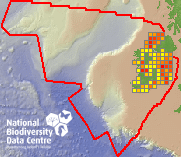 Distribution of the number of records within each 10km grid square (ITM).Marine Map - 50Km