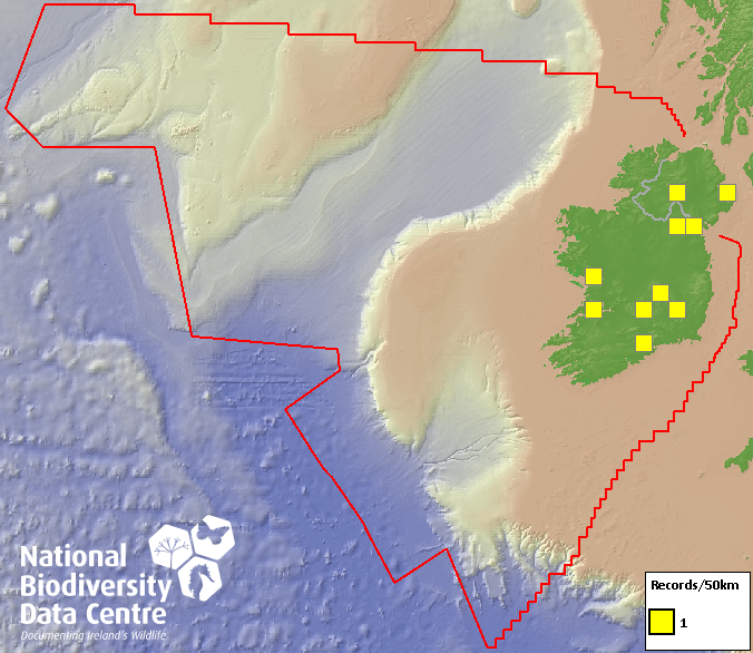 Distribution of the number of records recorded within each 10km grid square (ITM).Marine Map - 50km