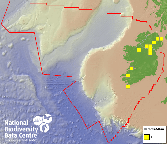 Distribution of the number of records recorded within each 10km grid square (ITM).Marine Map - 50km