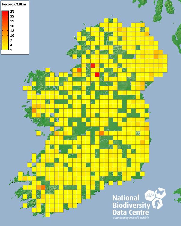 Distribution of the number of records recorded within each 10km grid square (ITM).Marine Map - 50km