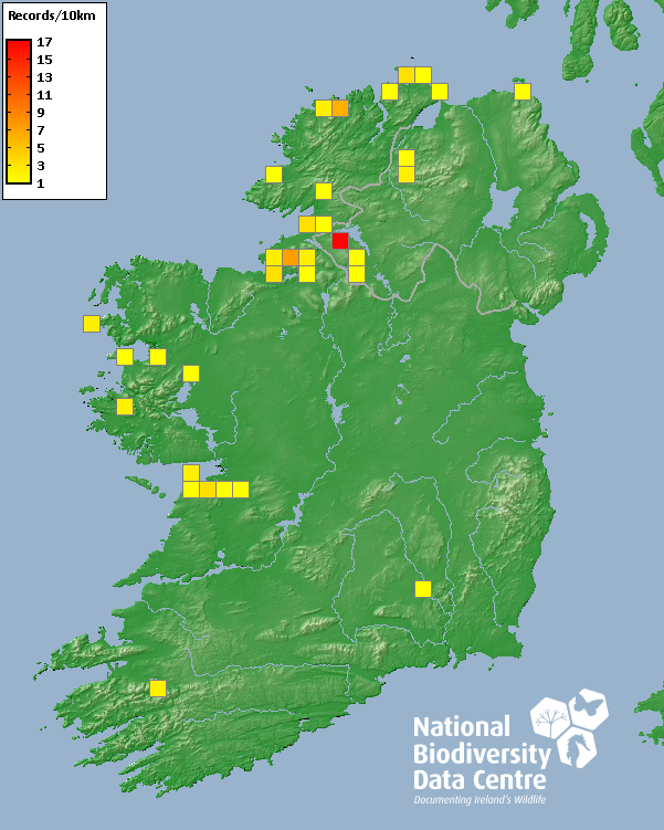 Distribution of the number of records recorded within each 10km grid square (ITM).Marine Map - 50km