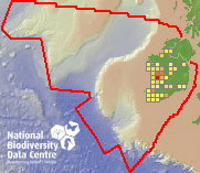 Distribution of the number of records recorded within each 10km grid square (ITM).Marine Map - 50km